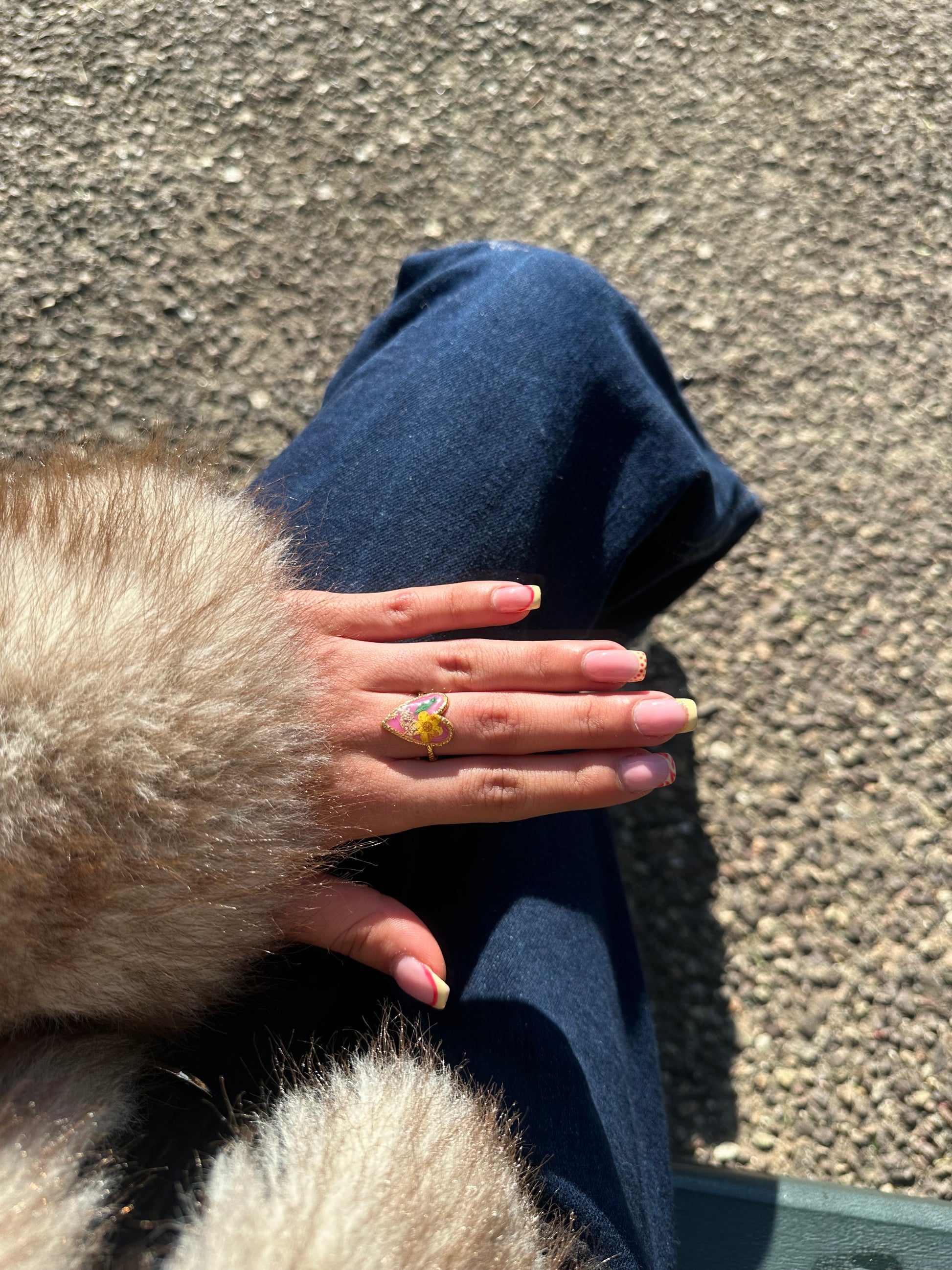 Bague ajustable en acier inoxydable en forme de cœur avec des motifs florals dans le cœur