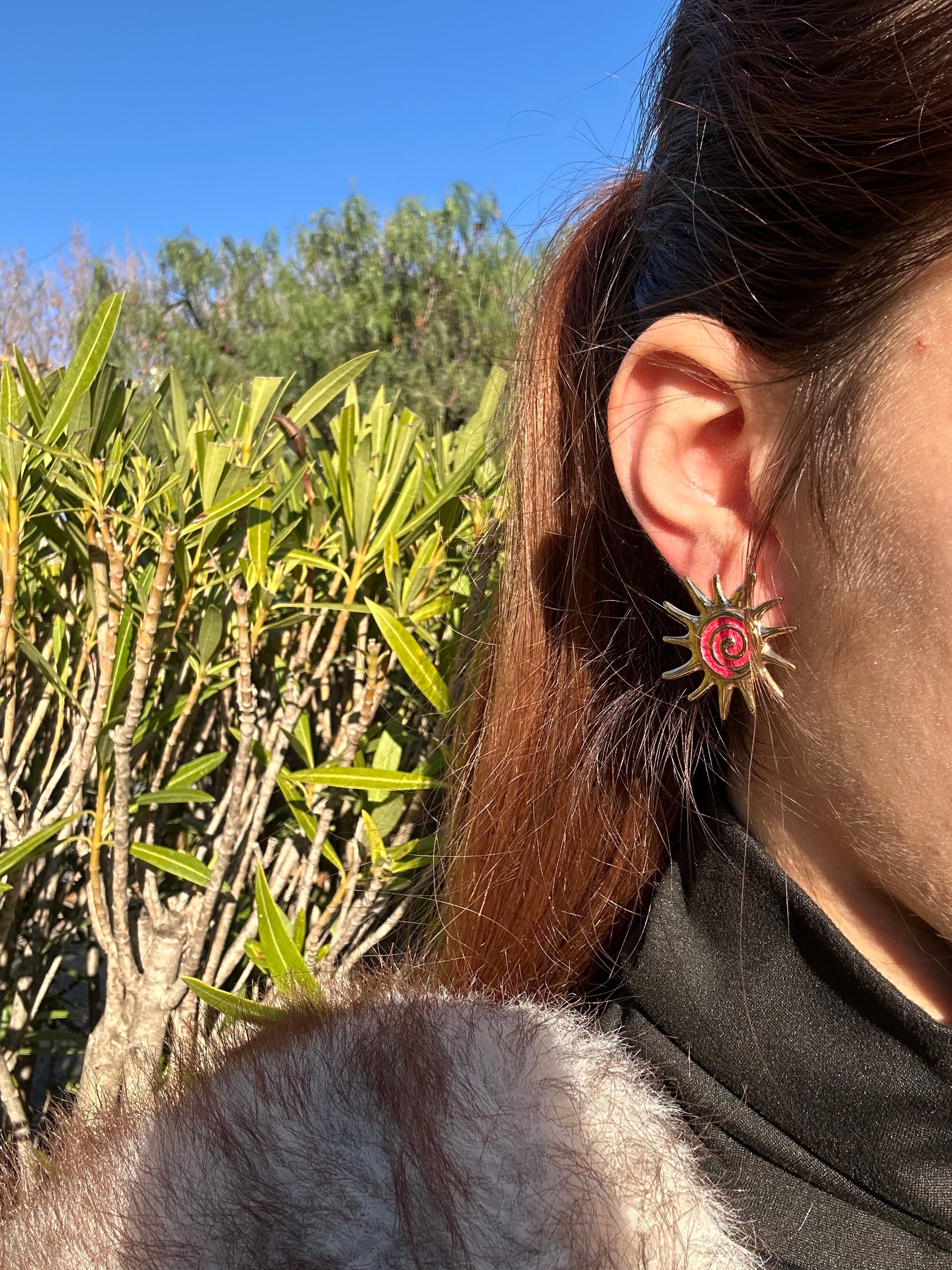 Boucles d’oreilles en forme de soleil en acier inoxydable, se ferment avec fermoirs