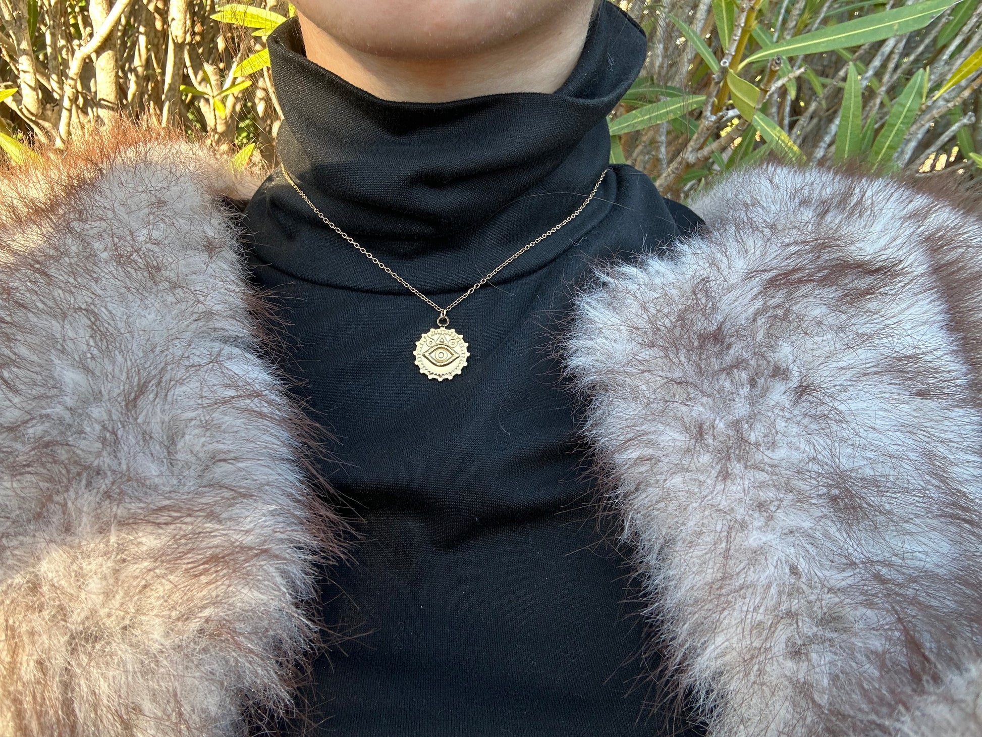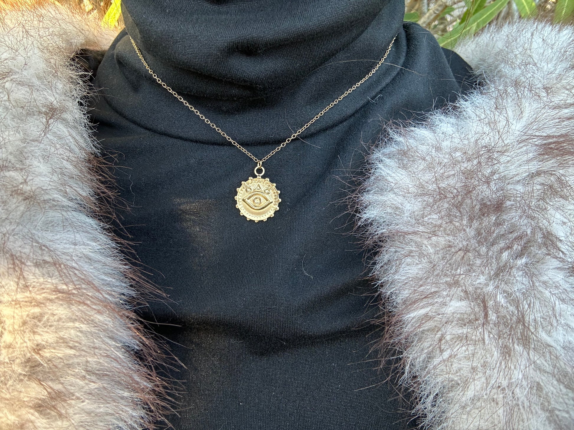 Collier en acier inoxydable avec un pendentif ayant un œil au centre de son cercle