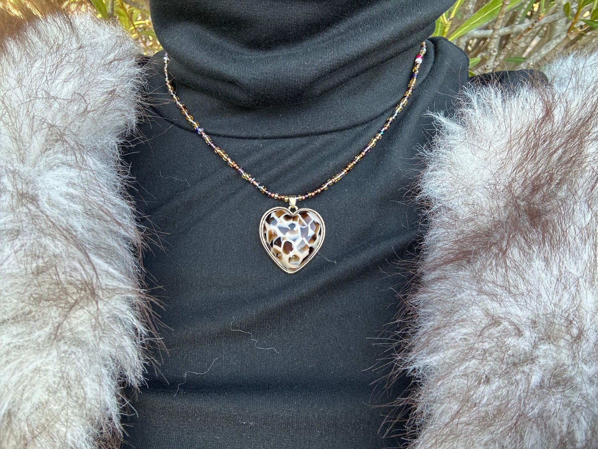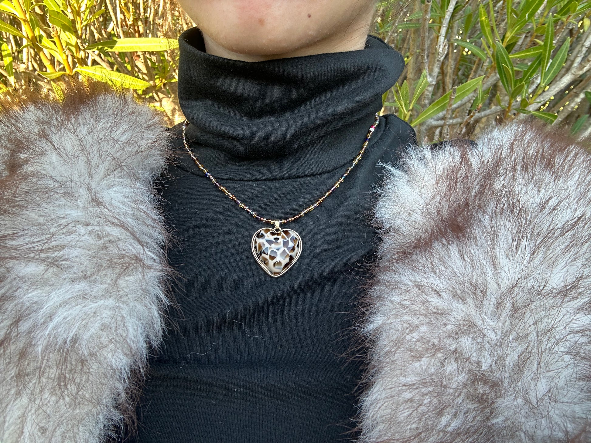 Collier en perle avec pendentif en forme de cœur, en acier inoxydable