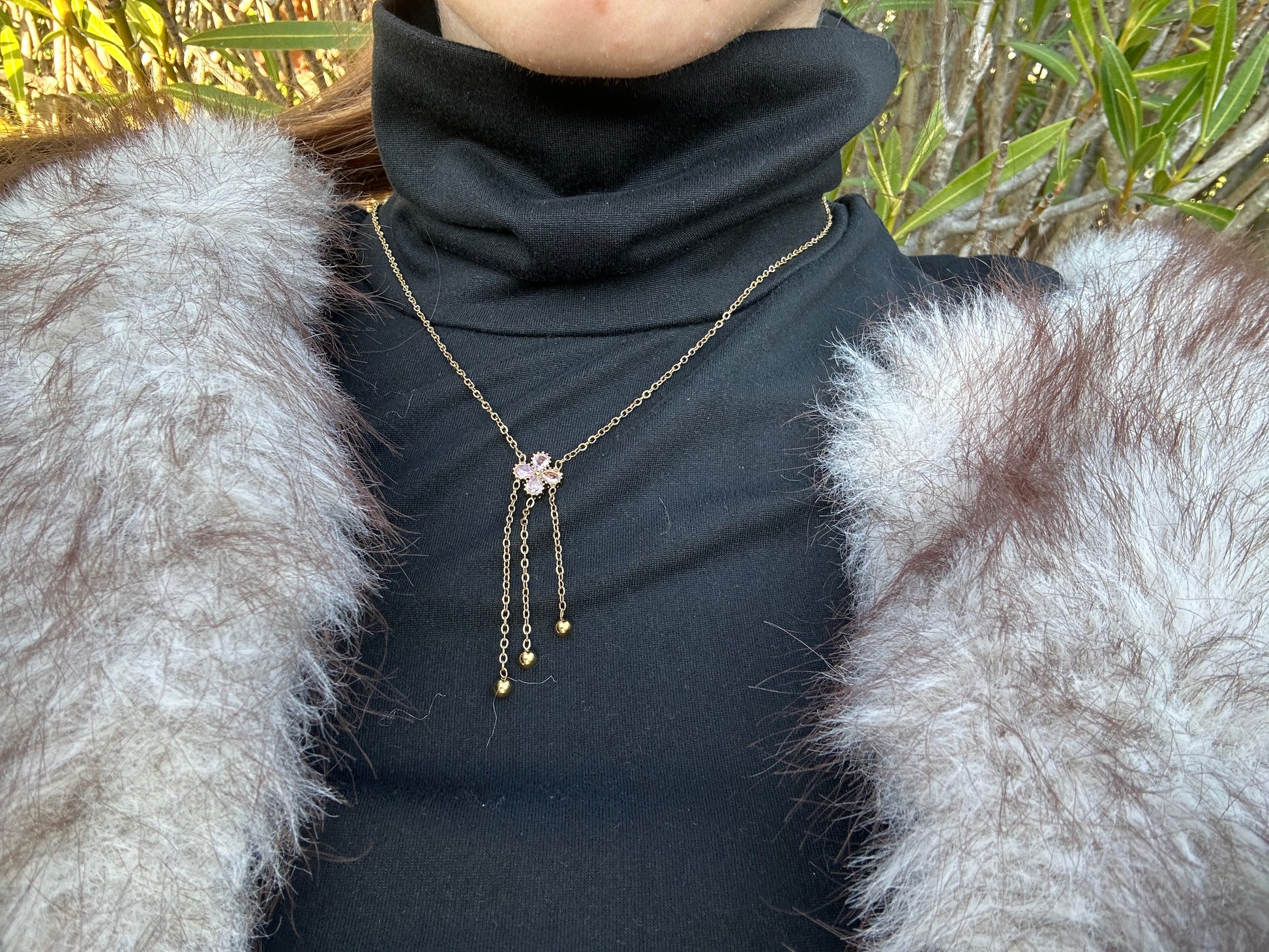 Collier fleur pendant - acier inoxydable doré