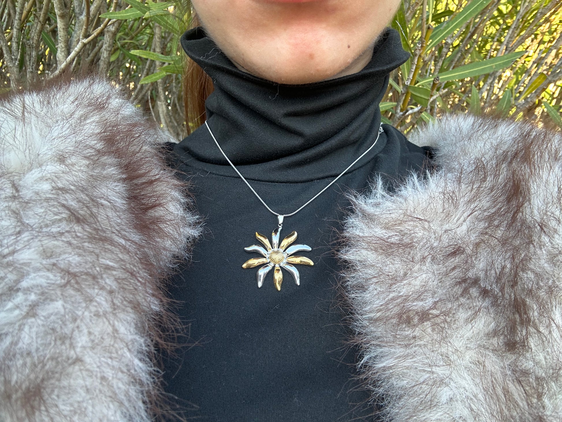 Collier avec pendentif en forme de fleur, en acier inoxydable