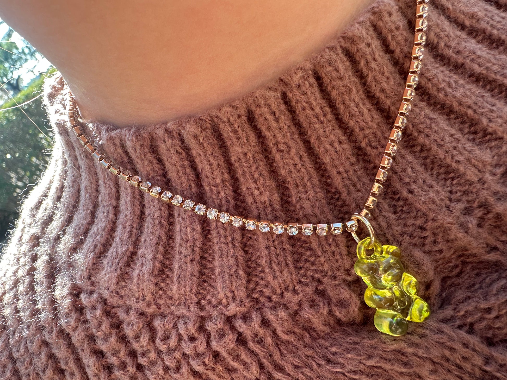 Collier en strass avec un ourson en pendentif