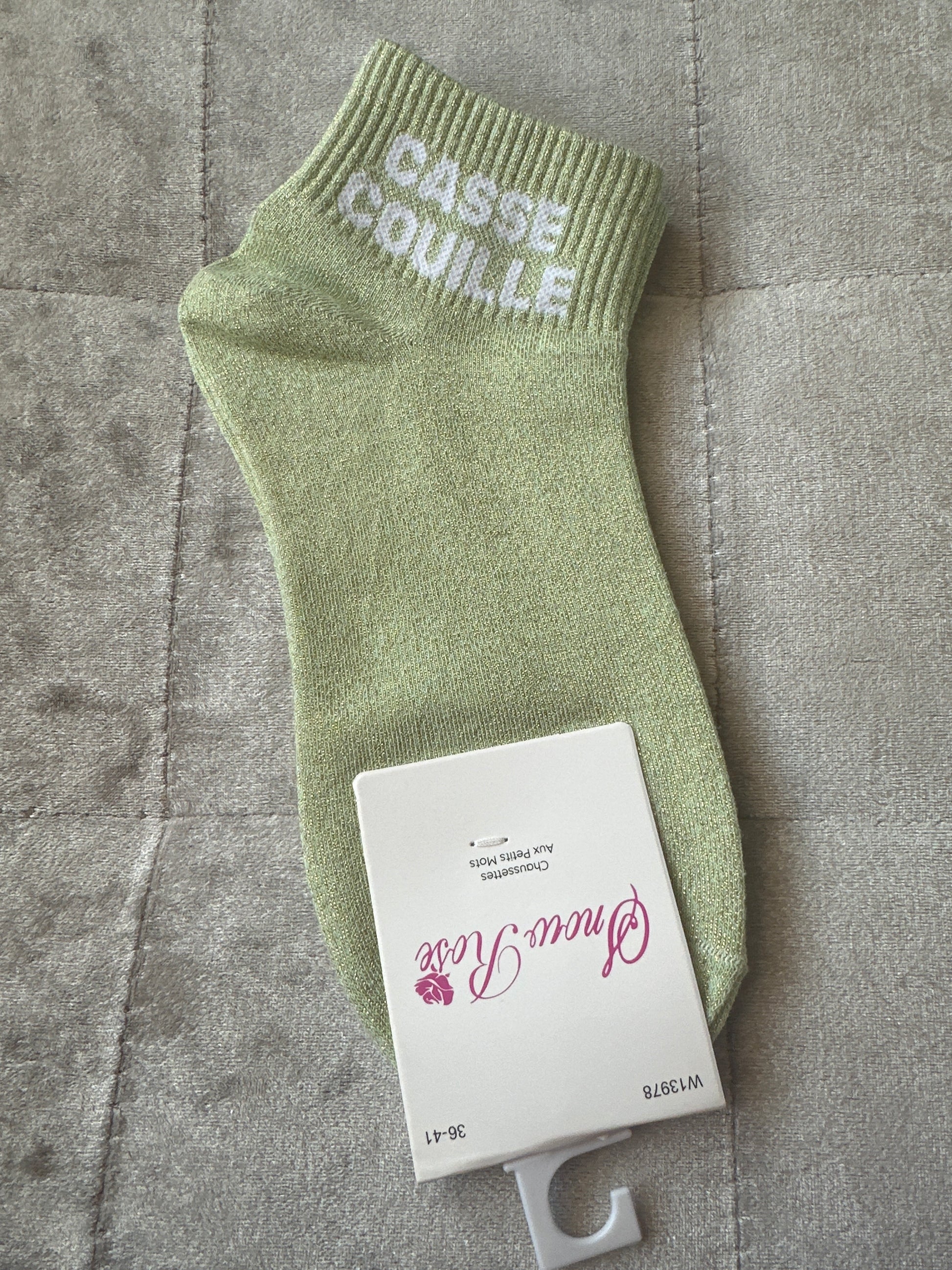 Socquettes pailletées message « casse couille », taille 36-41, couleur menthe et blanc