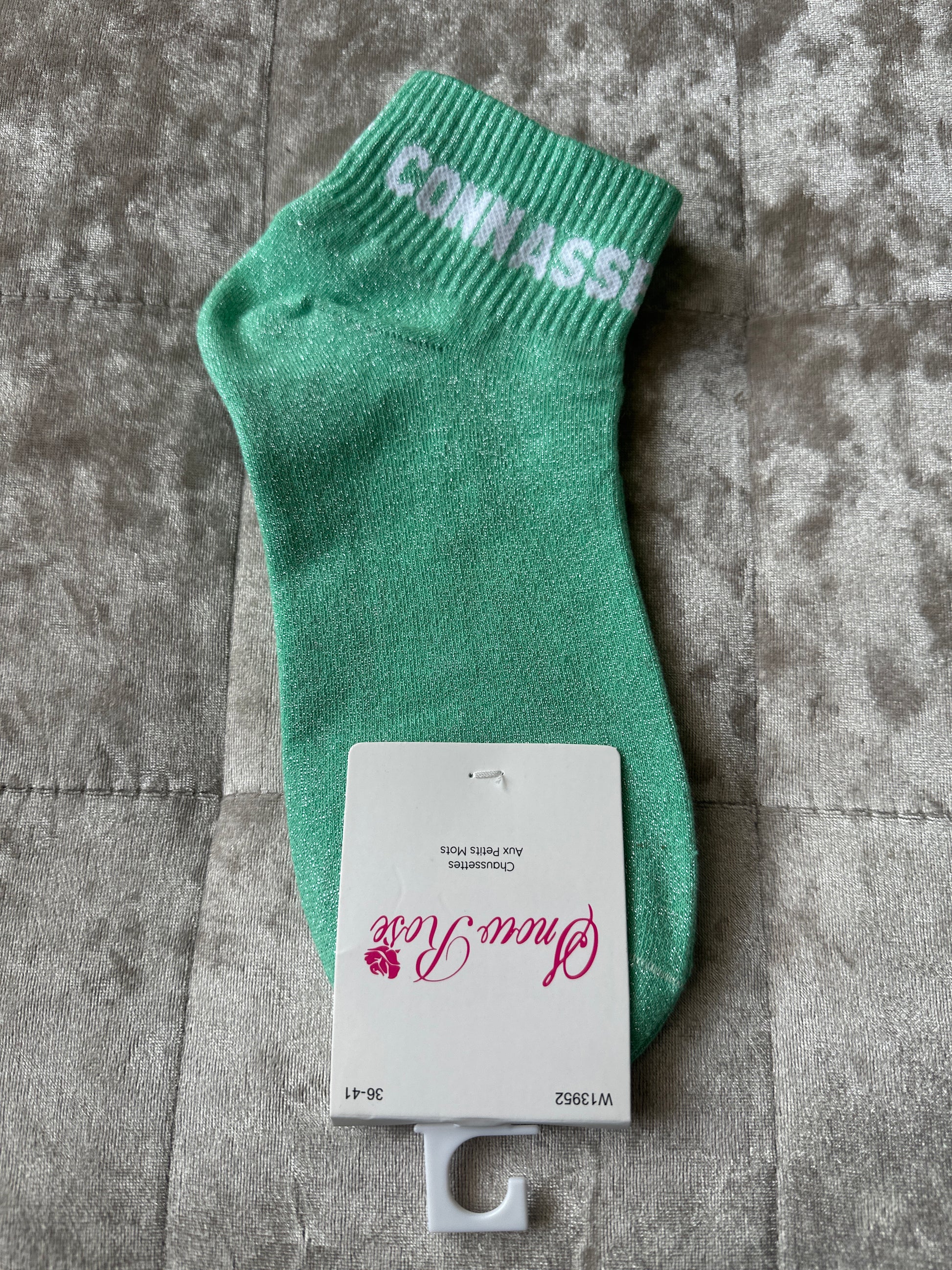 Socquettes pailletées message « connasse », taille36-41, couleur menthe et argenté
